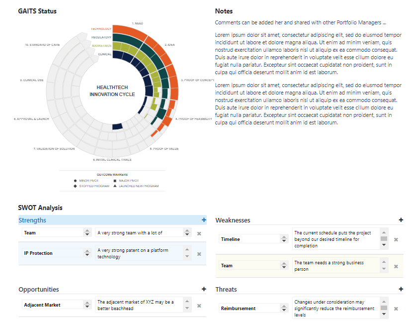 GAITS enables managers, advisors, and reviewers a simple and private way to share perspectives on a project via a SWOT analysis or through unstructured text